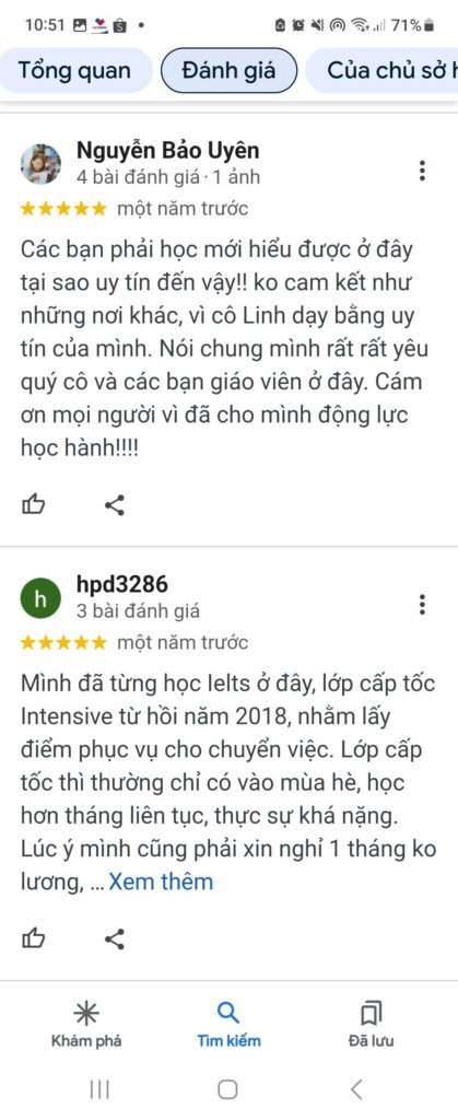 Các bạn phải học mới hiểu được ở đây tại sao uy tín đến vậy?? ko cam kết như những nơi khác, vì cô Linh dạy bằng uy tín của mình. Nói chung mình rất rất yêu quý cô và các bạn giáo viên ở đây. Cám ơn mọi người vì đã cho mình động lực học hành !!!